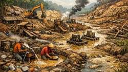 Naraswara.id – Kekacauan ekologis yang ditinggalkan aktivitas Pertambangan Emas Tanpa Izin (PETI) bukan lagi sekedar catatan gelap di pinggiran masyarakat. Ia telah menjelma menjadi luka menganga—pada tanah, sungai, lingkungan, dan kehidupan warga. Pertanyaan klasik yang selalu muncul: Siapa yang harus disalahkan? Namun sebelum menunjuk jari, kita perlu melihat bahwa masalah PETI bukan sekedar kejahatan lingkungan, tetapi kegagalan kolektif.